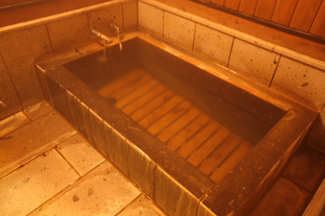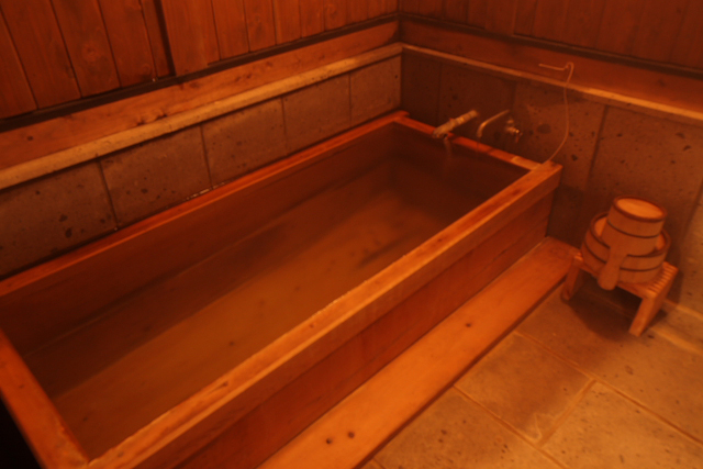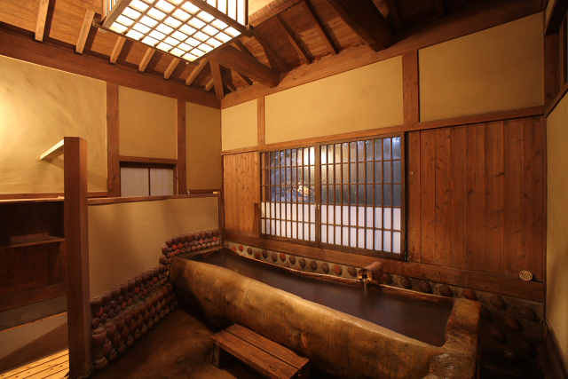 そこには、鎌倉時代より湧き続ける源泉をなみなみと湛えています。入浴の際、浴槽からザブンとこぼれる瞬間は、温泉ファンならずとも、贅沢な気分を味わえる筈です。また、浴槽が少し高くなっているせいもあり、ご年配の方にも利用しやすい、と評判です。